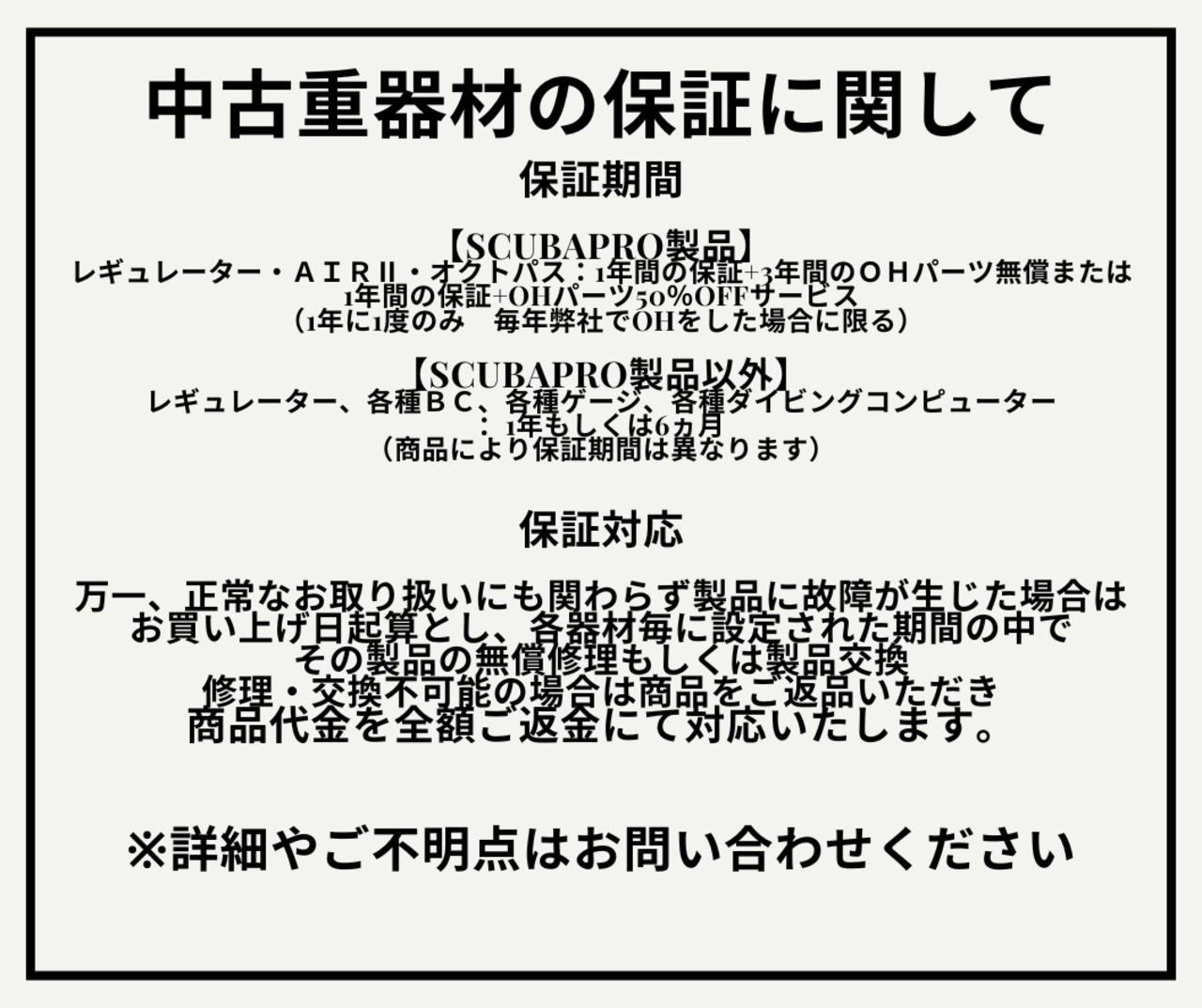 レギュレータとオクトパスはご購入日を記載した保証書付きの取説が同封します。