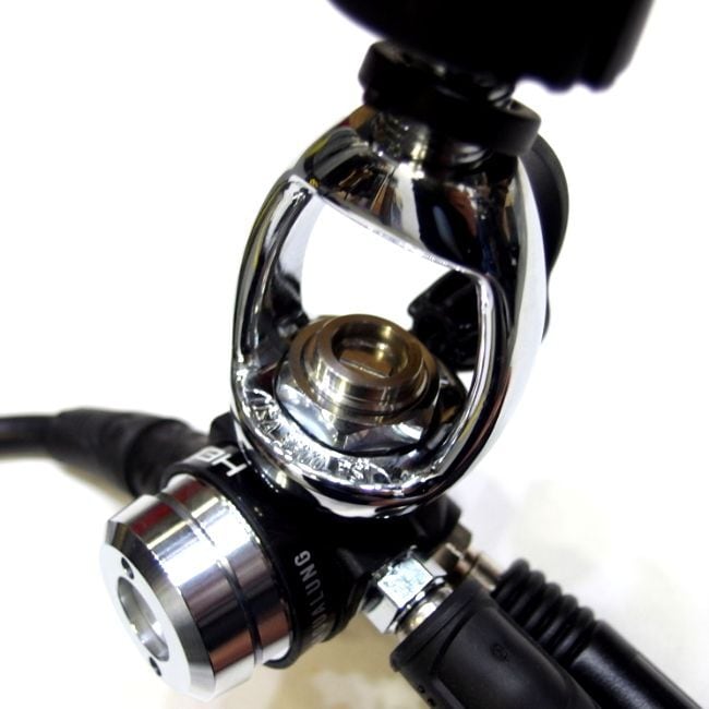 ★ファーストステージをタンクバルブからはずすとバルブ取り付け口フィルター部分に