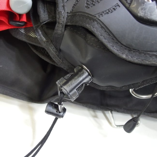 ドライスーツバルブの位置を避け、最摘な位置でチェストストラップを使用できます