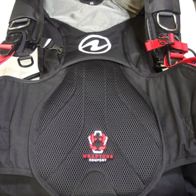 ラプチャーハーネスシステムが体をしっかりホールドし、タンクの重さを分散させることで